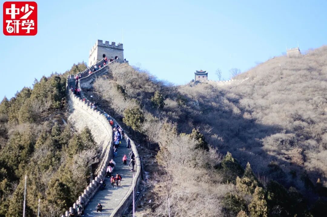 站在长城上远眺,孩子们心中的民族自豪感油然而生,爱国之情愈发强烈。“ 登上长城的那一刻,我被深深震撼了!长城不仅是防御敌人的伟大工程,更体现着中华儿女的智慧与才干。我们要学习古人自强不息、坚强不屈的精神。 ”新疆生产建设兵团第二师铁门关市二二三团中学学生王莹说。