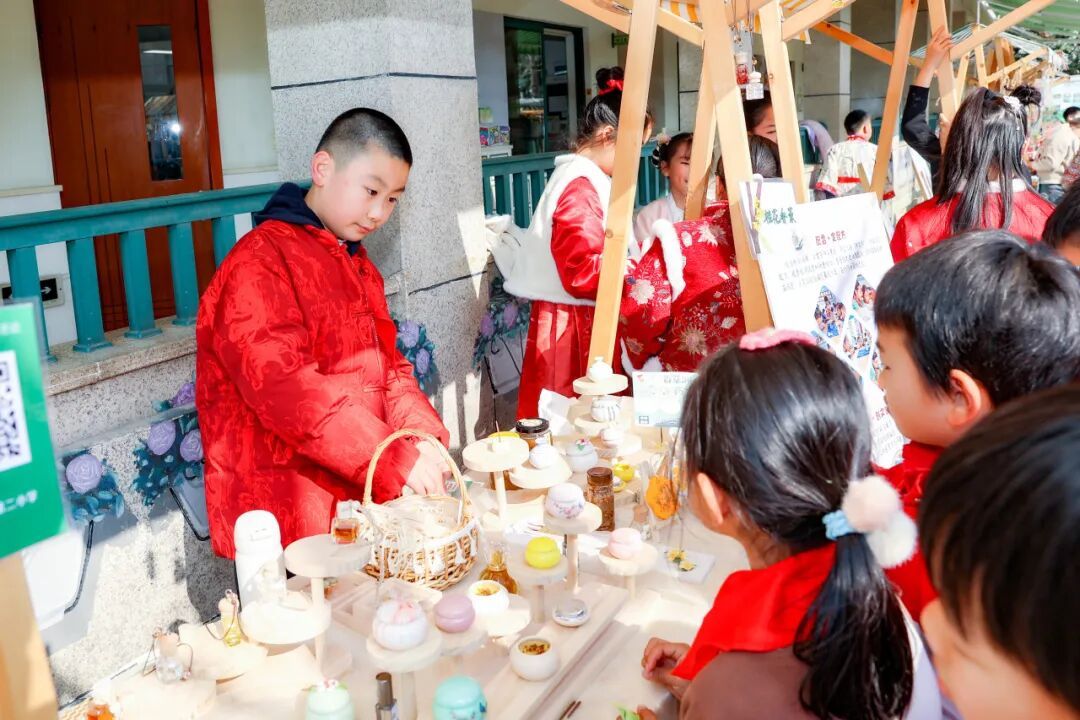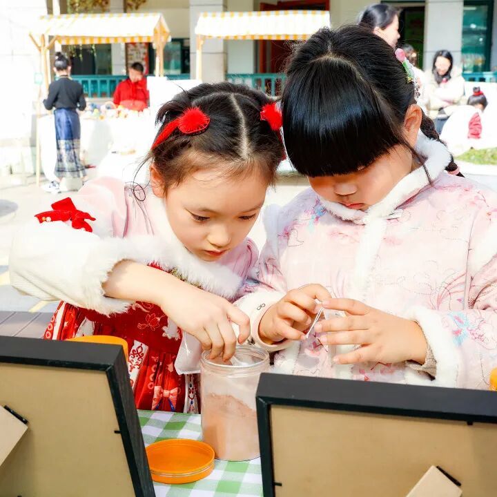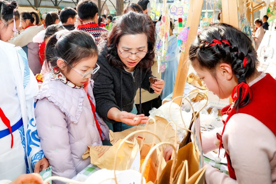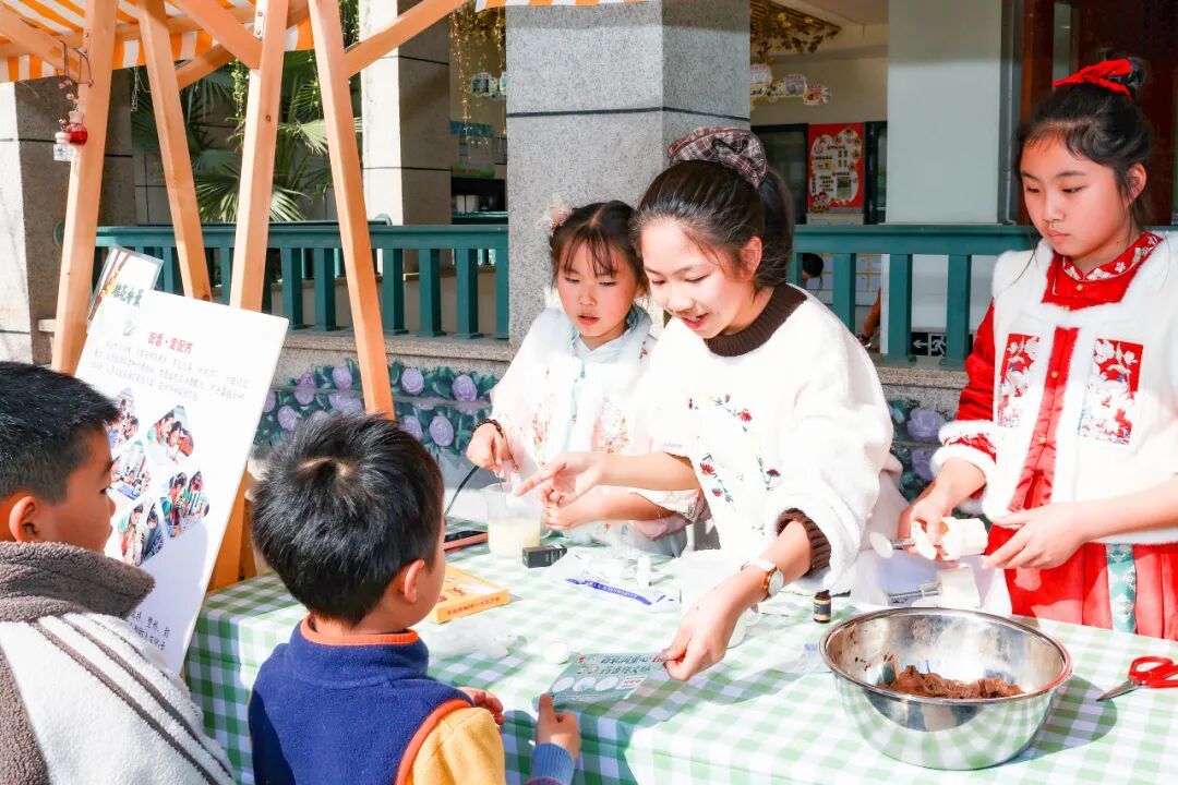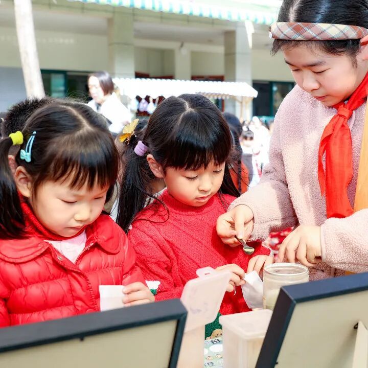梨膏糖摊位前甜香扑鼻!小朋友们小心翼翼地把亲手熬制的梨膏糖装进漂亮小袋子,指尖翻飞间满是认真,甜蜜的滋味在校园里悄悄蔓延~
