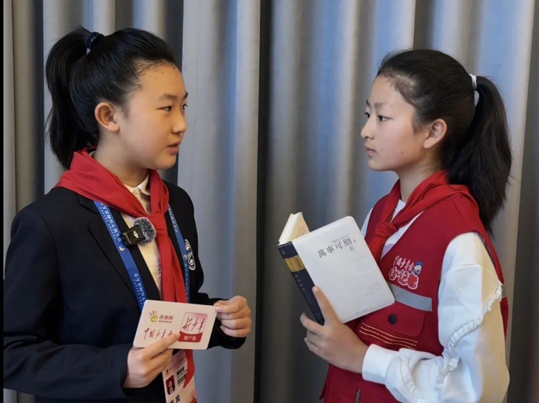 《中国少年报》小记者敖艺萌(右)采访黄聆哲