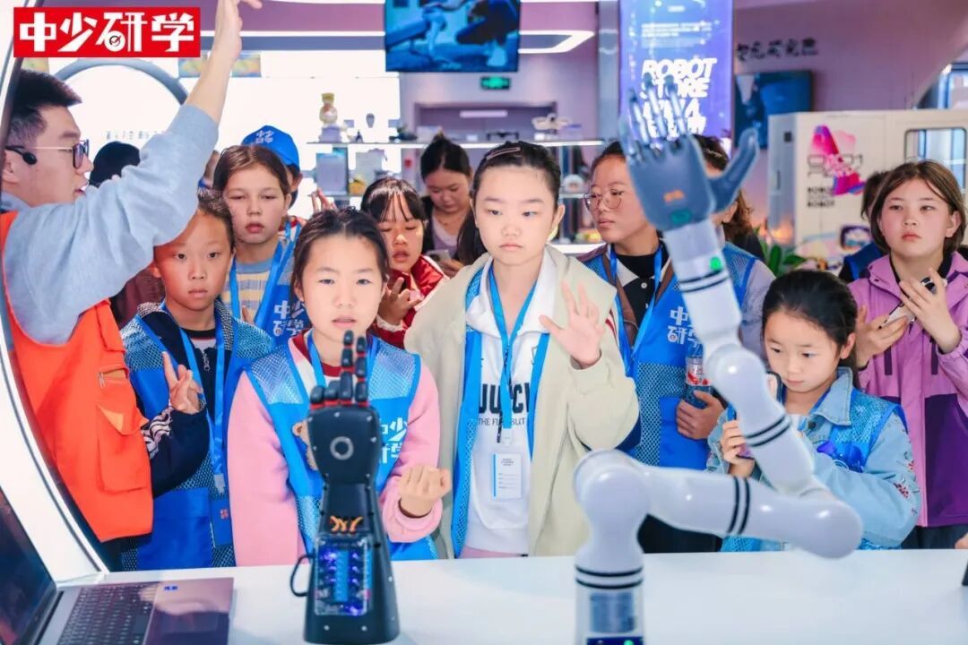 在西湖文旅集团文三数字生活街区,大家近距离接触各种类型的智能机器人——有的机械臂能精准抓起一颗弹珠,有的能跟着指令跳舞,有的可以踢足球……杭州“六小龙”的各种创新科技,人工智能、仿生手臂、脑机接口等等,更让小伙伴们感叹:“现代科技真的太厉害了……”