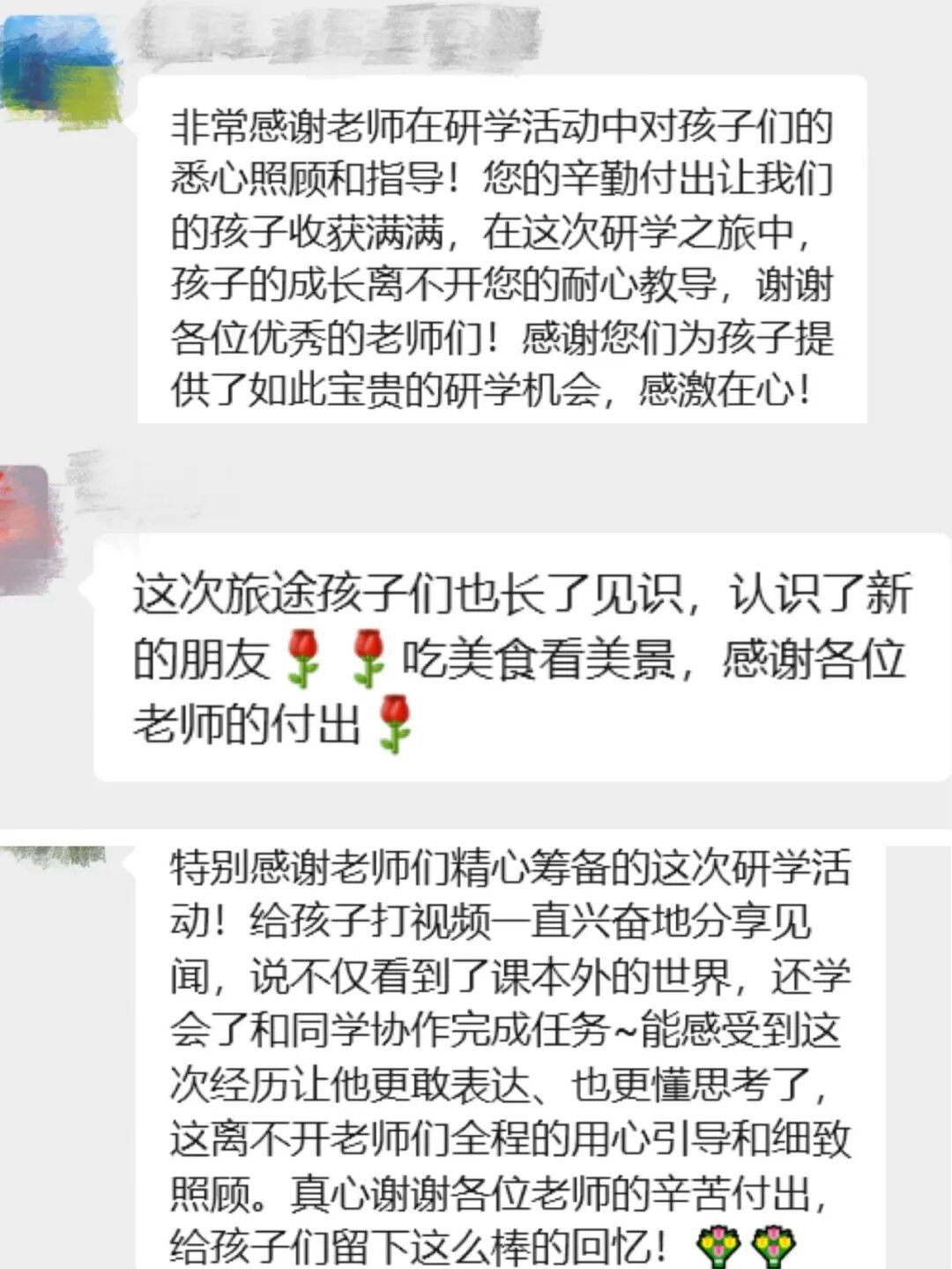 家长群里,感谢的消息每天都在刷屏。阿卜杜拉妈妈说:“孩子每天跟我分享,说老师比我们还细心,连他不爱吃葱都记得,太感动了!” 魏爸爸留言:“孩子说研学比过年还开心,不仅长了见识,还学会了跟同学协作,谢谢老师们的用心!”然娜妈妈更是感慨:“这趟经历会成为孩子的宝藏,谢谢你们把孩子照顾得这么好。”