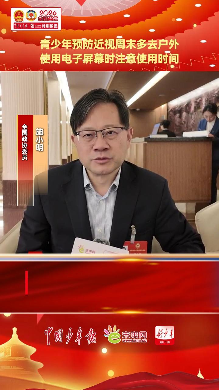 全国政协委员,中国疾控中心党委常委、副主任施小明在接受中国少年报·未来网记者采访时表示,青少年近视防控在学校、家庭要有良好的用眼环境,周末可以去户外,使用电子屏要注意使用时间。
