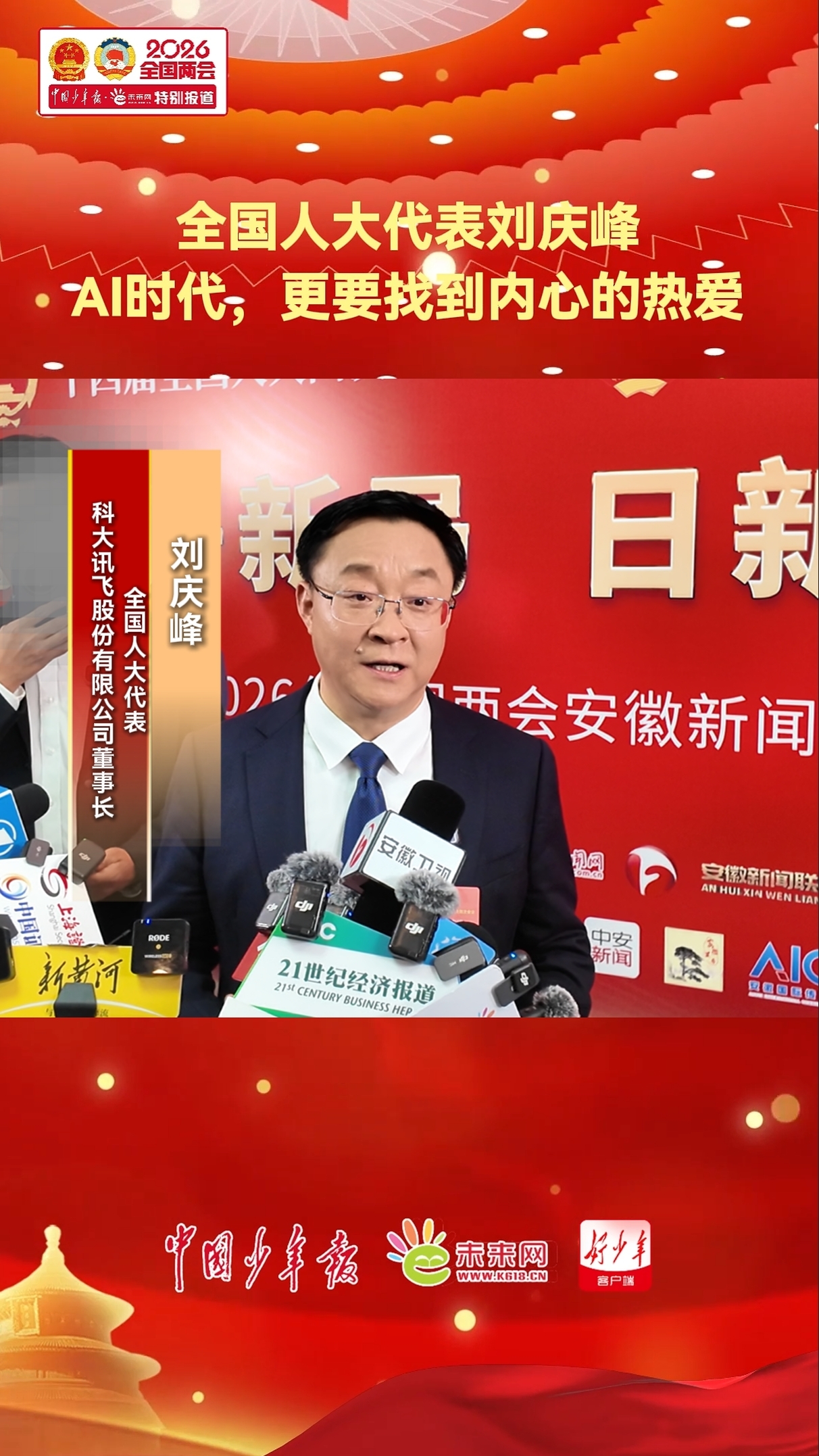 刘庆峰表示,当代青少年生在幸福时代,面对人工智能,不能只会使用,更要学会掌控。数理化等基础知识比以往更重要,AI本质依托数学算法。同时,想象力、创意与热爱至关重要,要找到内心热爱。