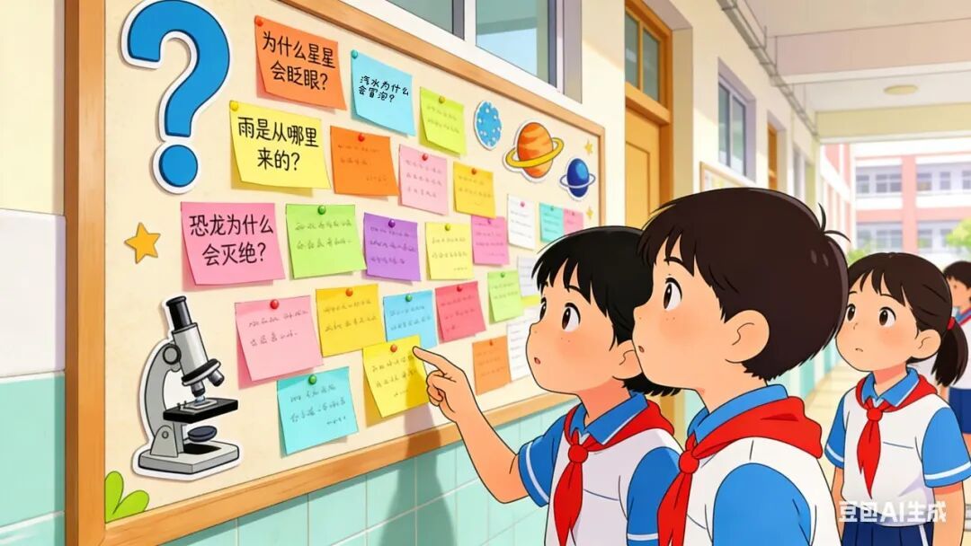 做一个发起人,在班级当中找一方空间,一面墙也好,一块地方也行,设立一个“问号角”发布问题。时间久了,这些“问号角”就会慢慢地“生长”成“问号墙”“问号廊”。