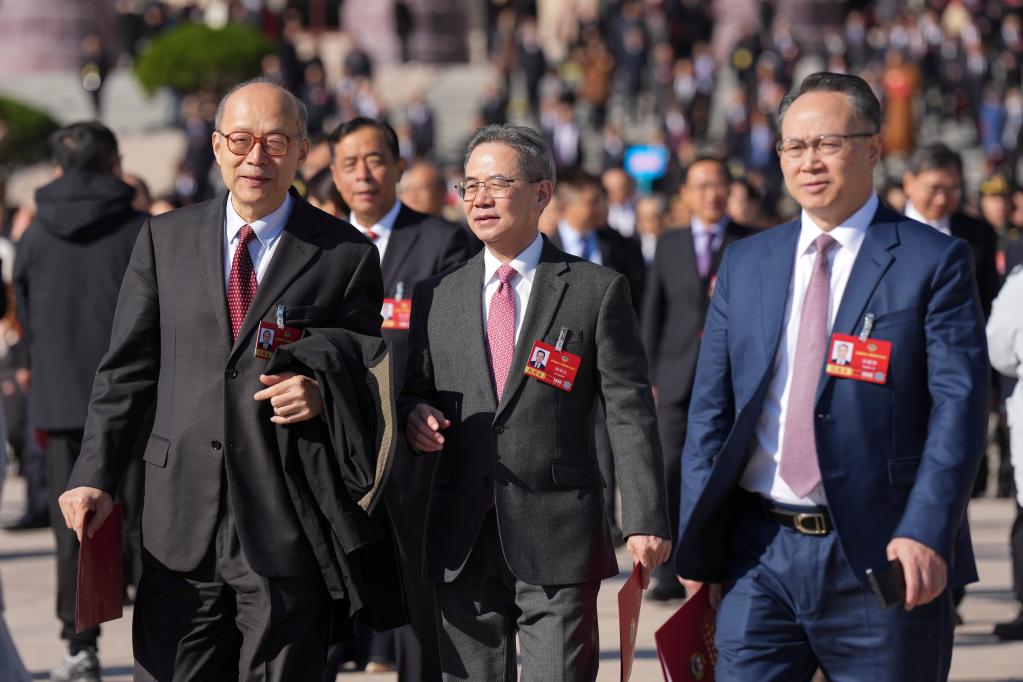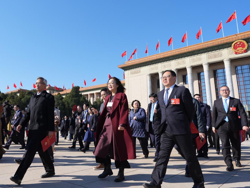 3月11日,全国政协十四届四次会议在北京人民大会堂举行闭幕会。这是闭幕会后,委员们走出人民大会堂。