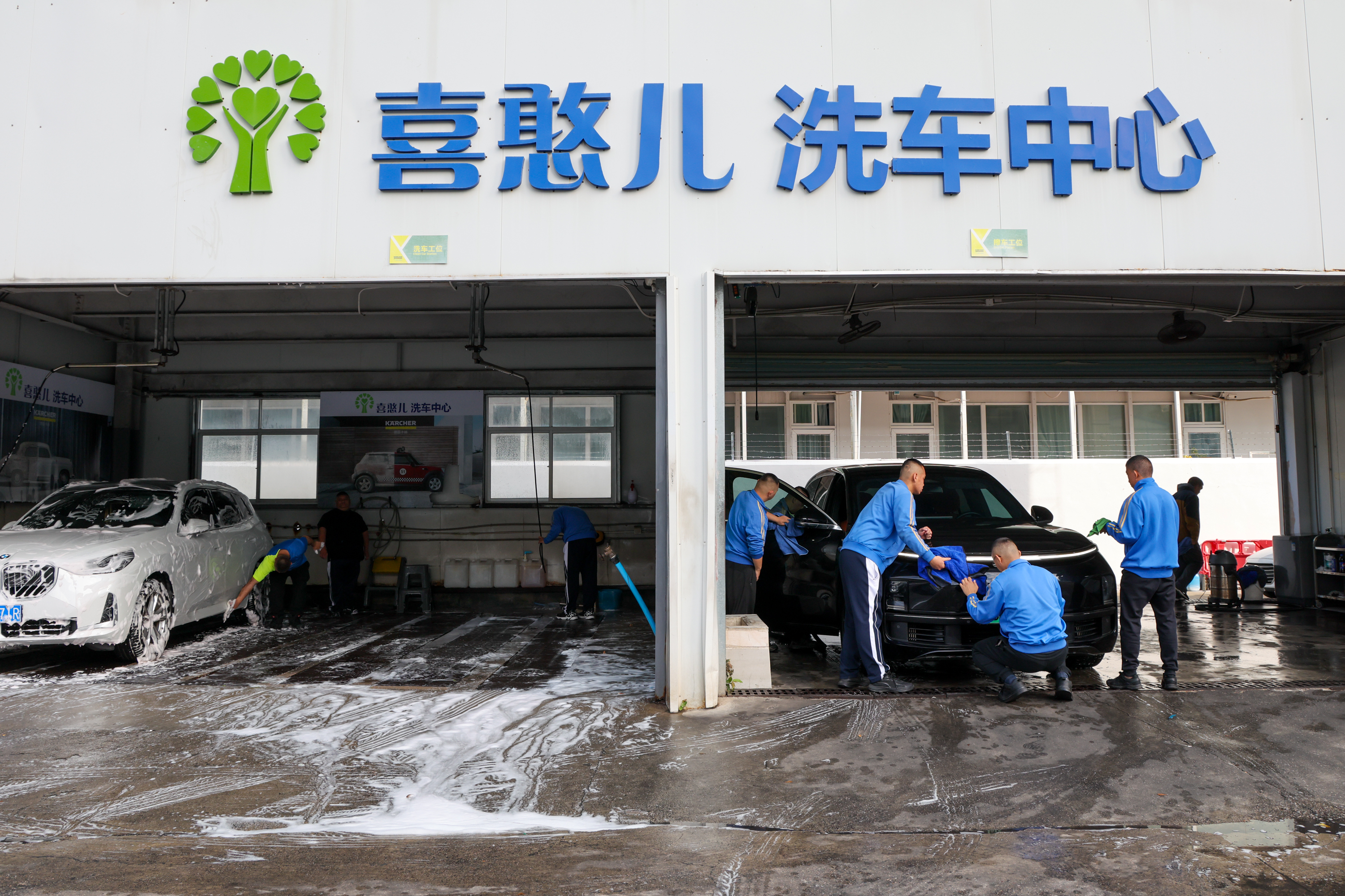 这是位于深圳市福田区的喜憨儿洗车中心(2月11日摄)。新华社记者梁旭 摄