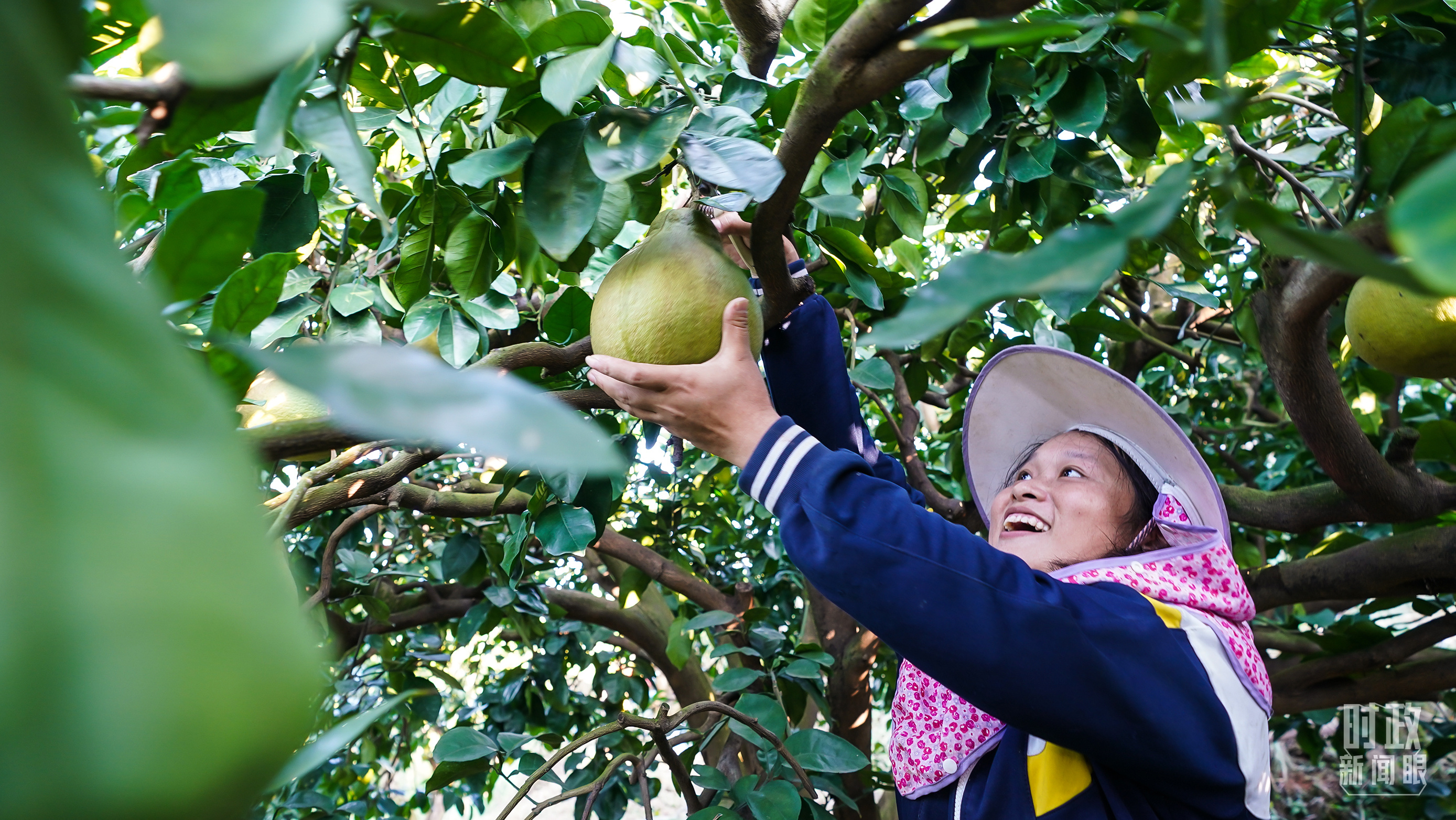 △南福村黄澄澄的柚子挂满枝头。(总台央视记者鄂介甫拍摄)