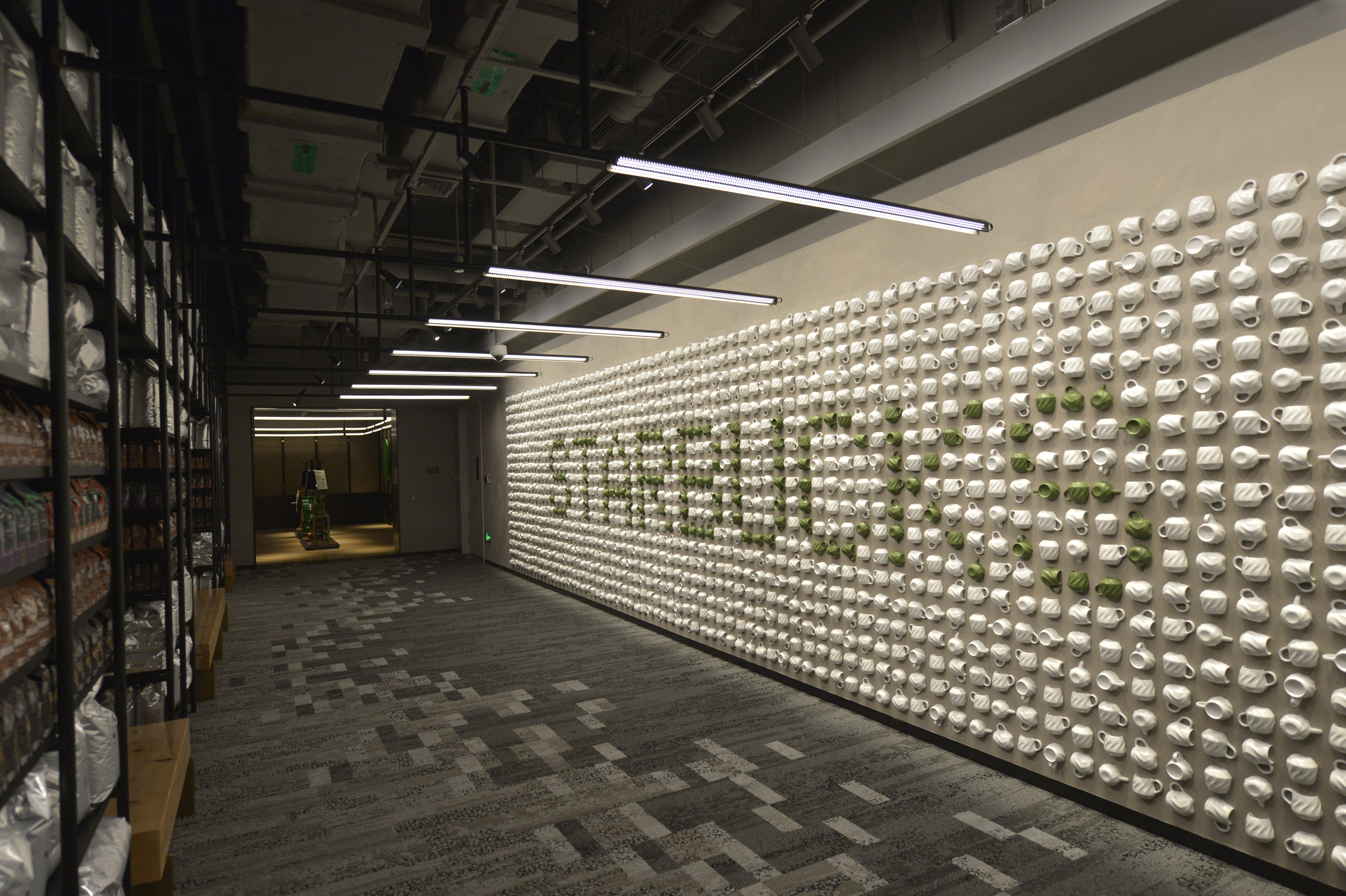 这是星巴克中国咖啡创新产业园的咖啡杯墙。新华社记者刘力航 摄