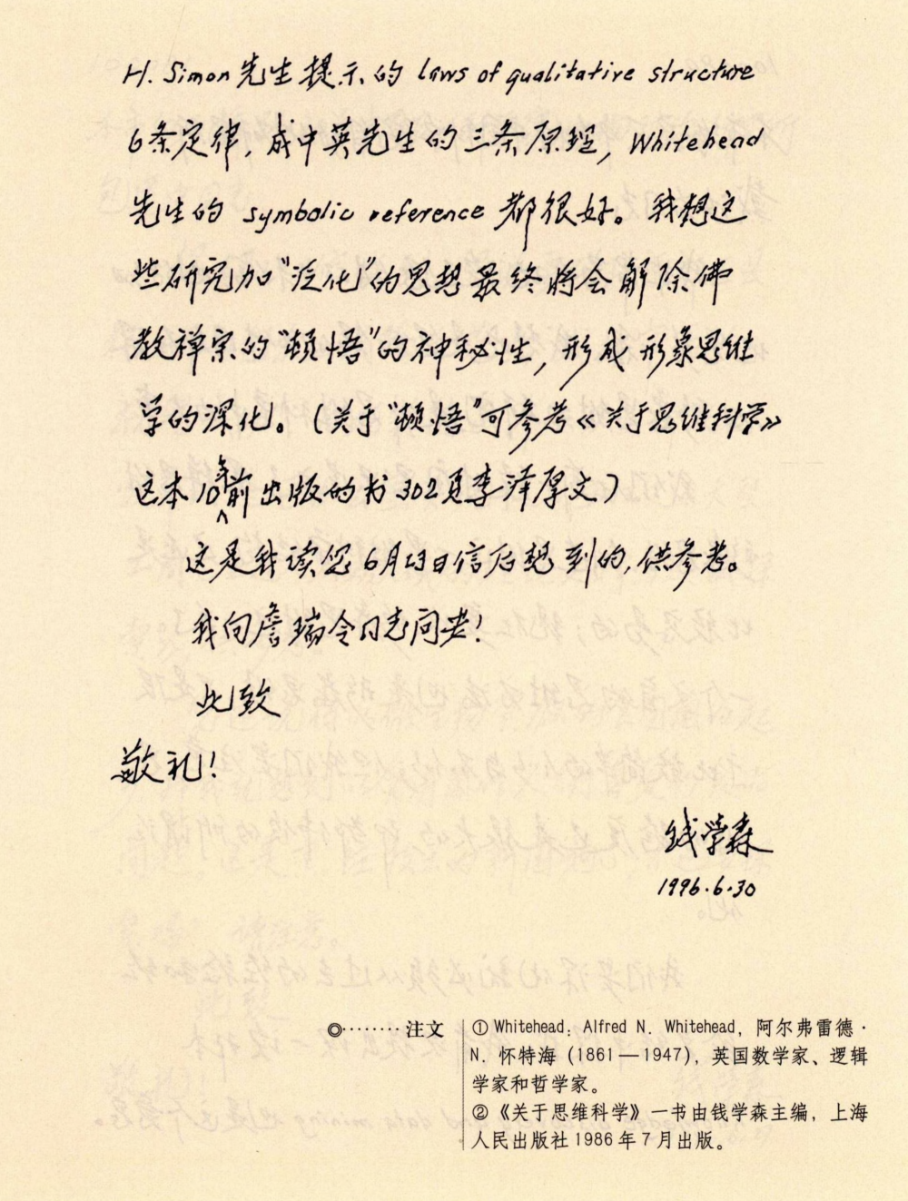 1996年6月30日致戴汝为