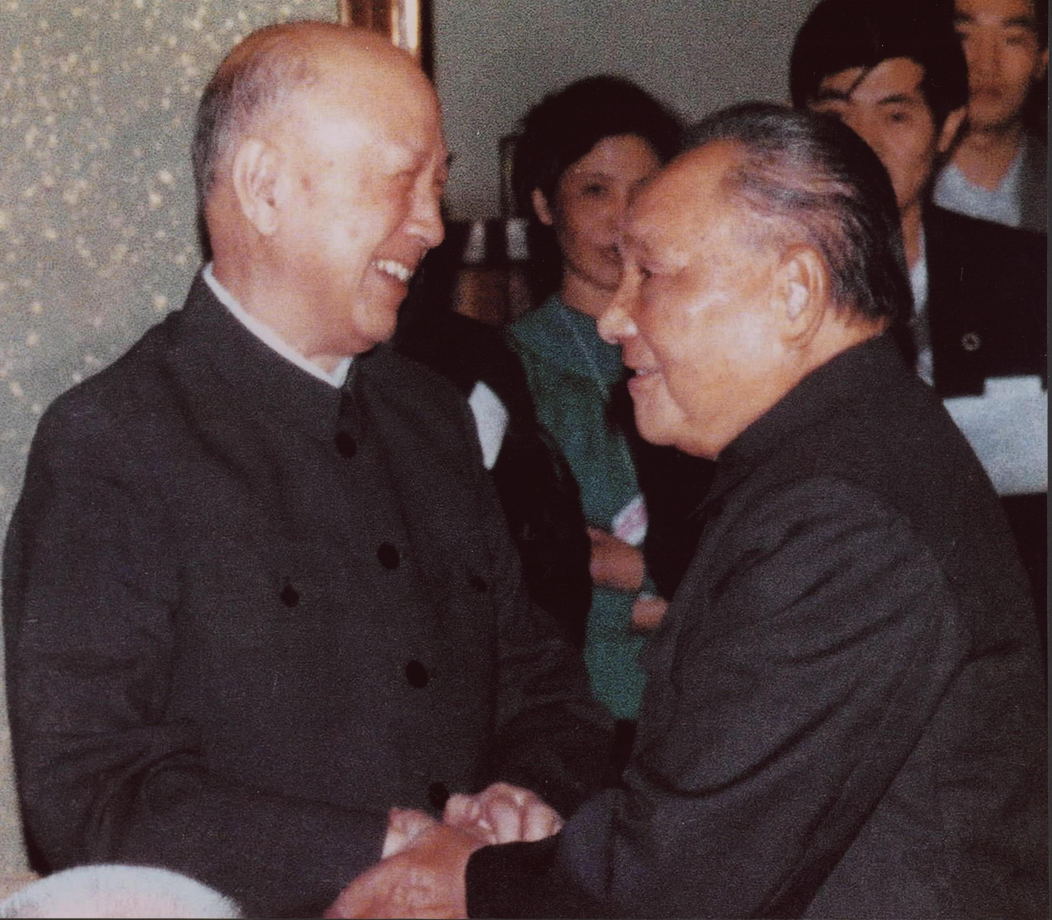 1989年10月1日,邓小平同志和钱学森同志在国庆招待会上