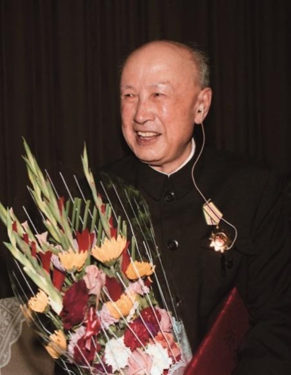 1991年10月16日,授予钱学森同志“国家杰出贡献科学家”荣誉称号仪式在人民大会堂举行。图为钱学森在授奖仪式上。