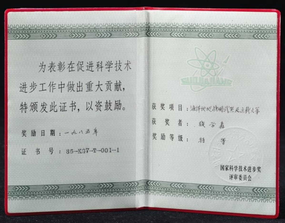 1985年,钱学森获国家科学技术进步奖特等奖。