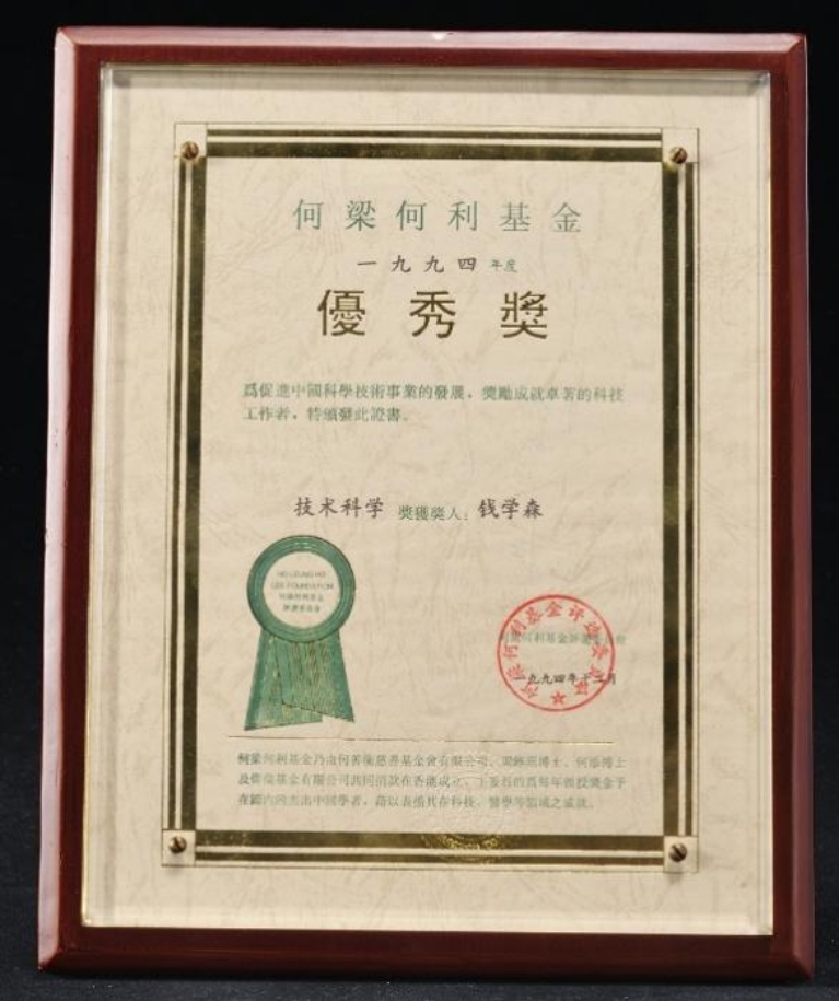 1995年,钱学森获何梁何利基金颁发的首届(1994年度)“何梁何利基金优秀奖”。
