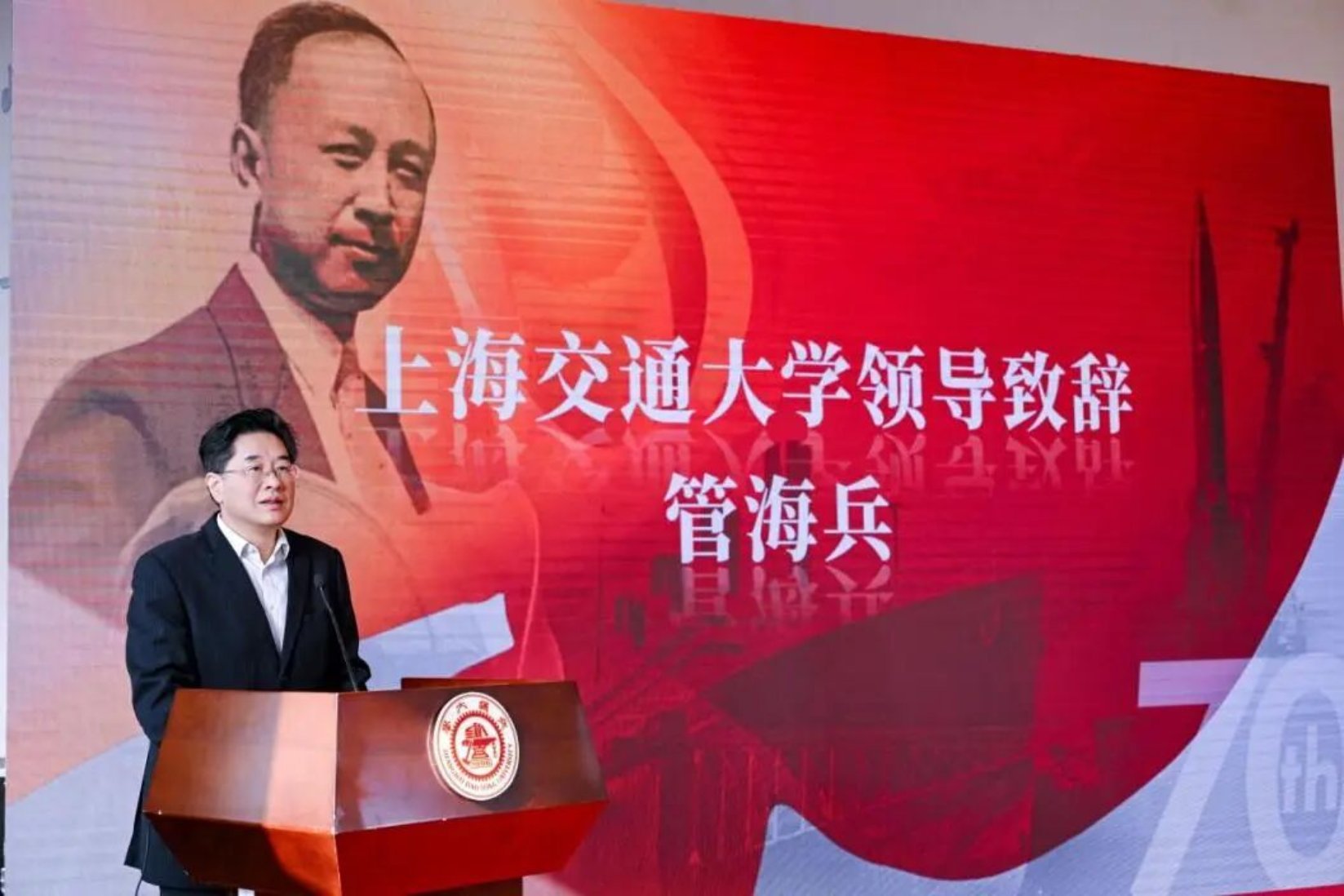 管海兵在致辞中表示,由上海交通大学与中国科协、中国航天基金会共同策划举办的“为国铸剑——钱学森与中国航天事业”展览以及全国巡展等纪念钱学森归国七十周年系列活动获得了广泛的社会关注与良好的公众反馈。他指出,展览、巡展、剧目展演等形式,既是上海交通大学深耕科学家精神传播、赓续红色基因的鲜活实践,更是钱学森学长崇高精神魅力与深远影响力的集中彰显。未来,上海交通大学将继续深入落实立德树人根本任务,强化精神引领、坚持铸魂育人,将科学家精神融入办学治校全过程,大力培育兼具家国情怀、科学素养与创新能力的时代新人。